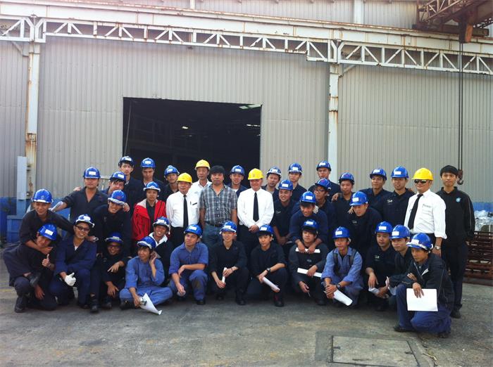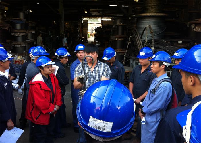 麥記獲海事訓練學院邀請講授半天的吊索具基礎課程,由麥記的技術部負責人陳先生 (Mr. Y.C. Chan) 在麥記倉庫向其學員簡單介紹鋼絲繩、纜繩、吊帶、鈎和卸扣等船上常用的用品,讓學生有機會近距離接觸這些用品,增加他們的學習興趣,學員也專心聆聽,勇於發問,氣氛良好。另外,陳先生亦向學員們介紹船上的常用述語,讓學員學習到更多書本以外的知識。